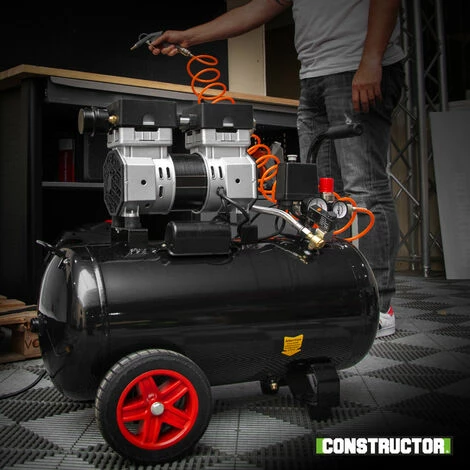 Avec sa cuve de 50L équipée d’une vanne de purge le compresseur silencieux CTSAC8-50 de la marque Constructor vous permettra de gonfler, d’agrafer, de buriner, de souffler, d’utiliser un pistolet peinture…