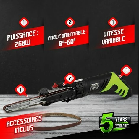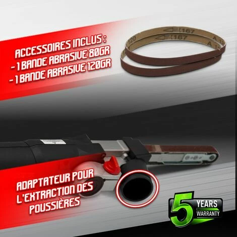 – Livrée avec 2 bandes abrasives : 1 grain 120 et 1 grain 80